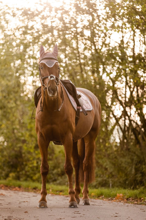 Quatermack, bei uns liebevoll Quatschi genannt, ist bei uns seit er vier Jahre alt ist - dementsprechend sind wir sein erstes zu Hause nach seinem Züchter. Er ist ein rundum unkompliziertes Pferd, der in jeder Sparte Spaß macht! Dressurbetont gezogen zeigt er sich stets motiviert beim Training. Er springt ganz leicht fliegende Wechsel und aufgrund seiner Aufmachung könnten wir ihn uns auch gut als Hunterpferd vorstellen. Er steht aktuell barhuf in einer gemischten Herde in einem Aktivstall, kennt aber auch andere Haltungsmodelle und war auch bereits auf allen vier Hufen beschlagen. Krank war er bei uns nie, lediglich eine kurze Zwangspause hatte er in all den Jahren, weil wir durch falsches Beschlagen einen Hufspalt hatte (nicht bis in die Tiefe), der aber problemlos seit dem Schmiedwechsel nun seit mehreren Jahren ausgeheilt und auch nicht wiedergekommen ist.